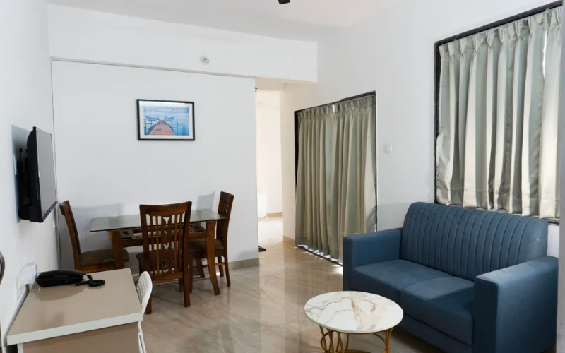 Strategically located in the thriving business district of Kharadi, Pune, Regent Suites offers a premium living experience designed for corporate and business travelers. With modern amenities and a homely atmosphere, our fully furnished service apartments are ideal for both short and long stays.